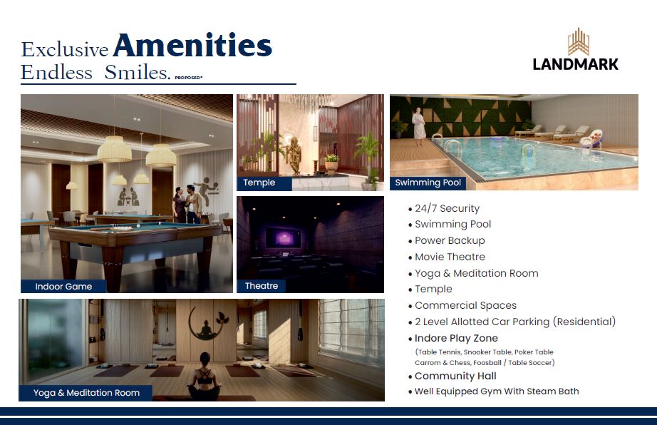 There are apartments for sale in Nirvana Landmark Magarkheda, Indore. This is a new launch project right now, and is expected to be delivered by Apr, 2027 .